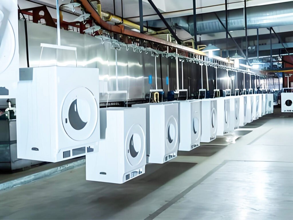 Each part of the system works efficiently and saves energy. The main parts include pre-treatment tunnels, drying and polymerization ovens, powder application booths, and overhead conveyors. This system ensures excellent coating performance, improves production efficiency, and lowers operational costs.
